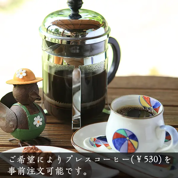 イーハトーヴォの森に最も近いカフェテリア。 備え付けのミント水を飲みながら本を読んだり、挽きたての豆で煎れるプレス珈琲を嗜んだり…。 だんぶり茶屋の向こうに続く散策路を歩いていけば、昔の田舎で見たような、川沿いの風景が広がっています。