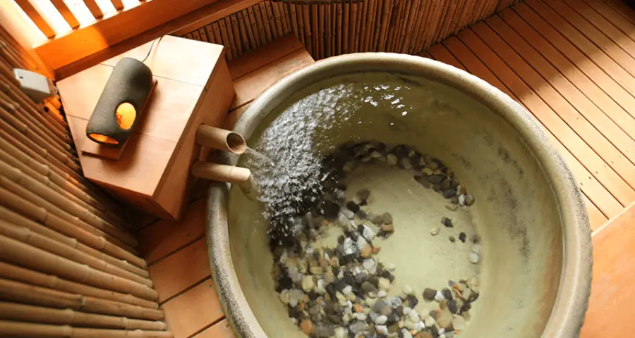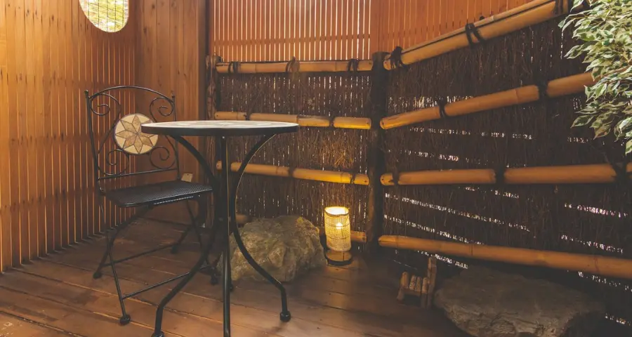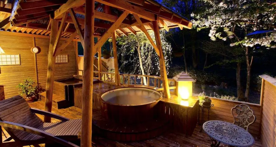 好きな時間に露天風呂で寛ぎ、季節の風を感じながら洋風テラスでティータイム。