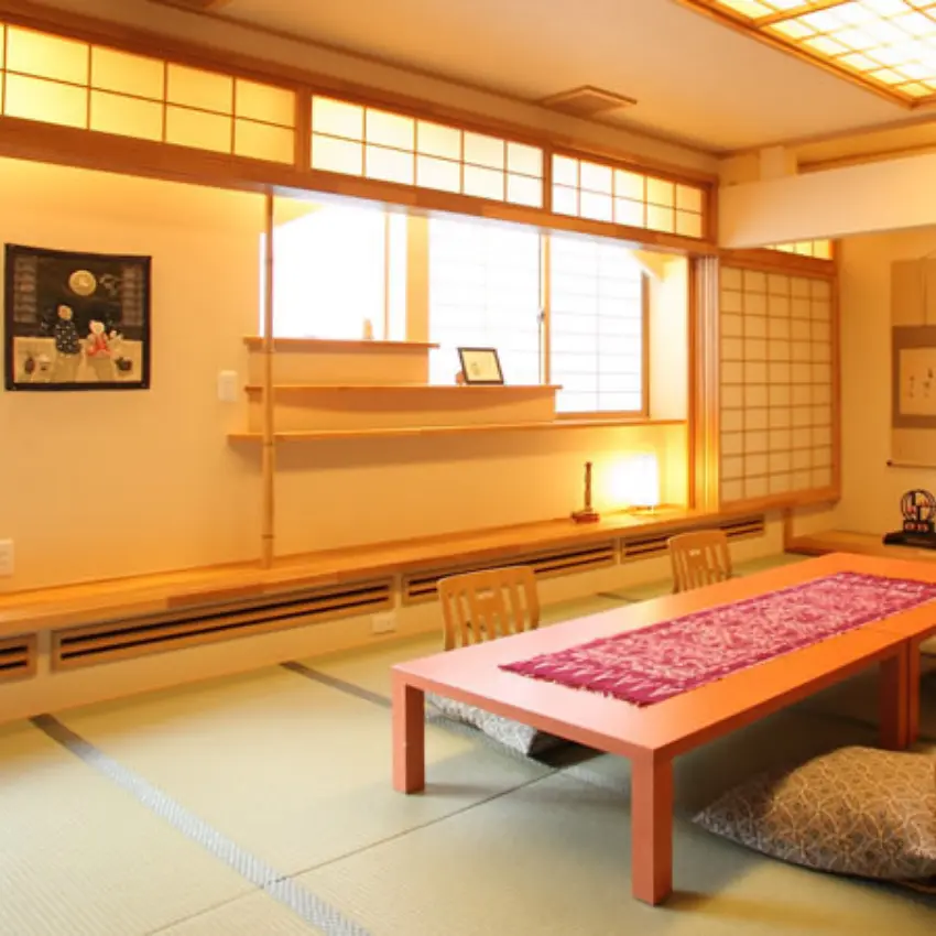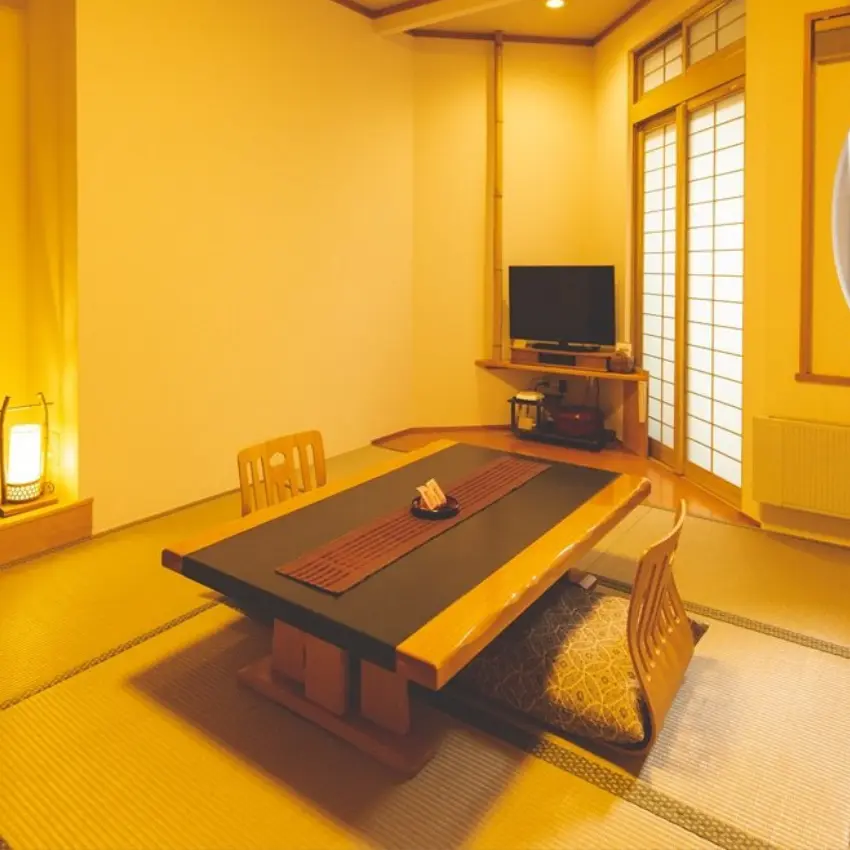 広さ約16畳の和室は、フロントや会食場、大浴場へのアクセスも良好。