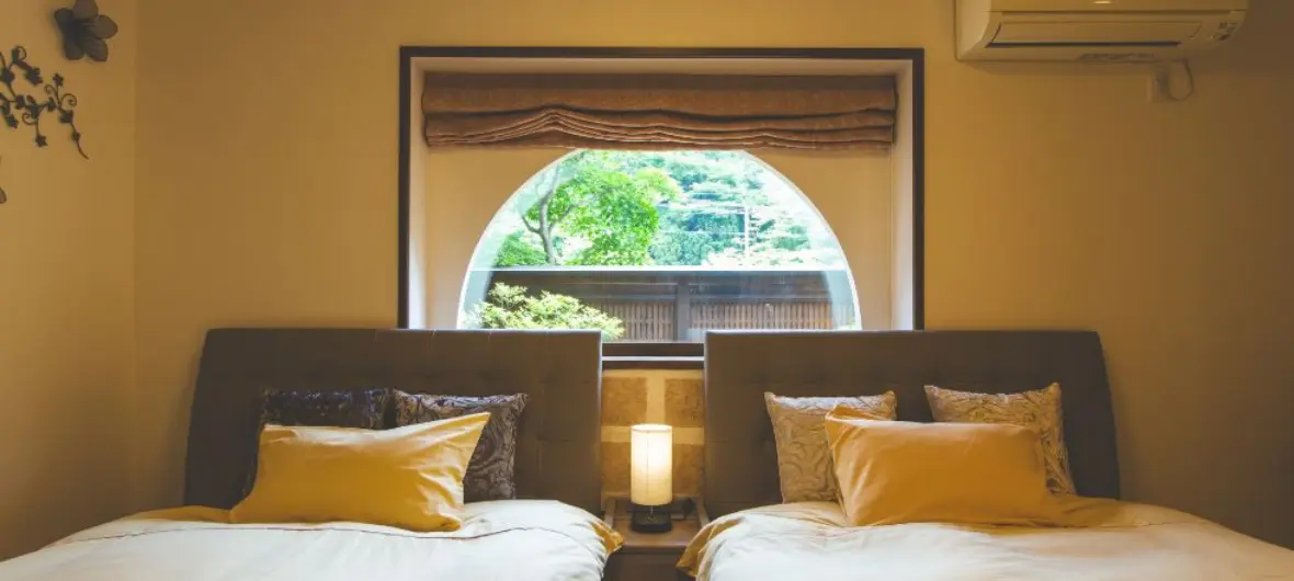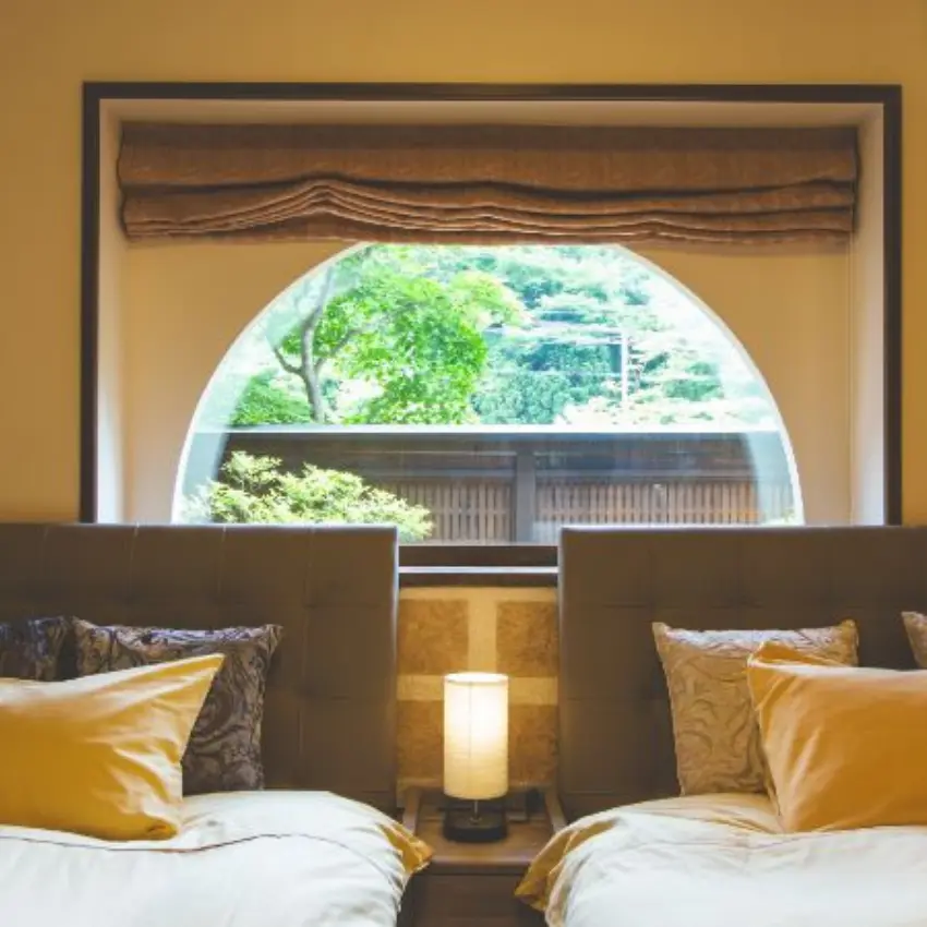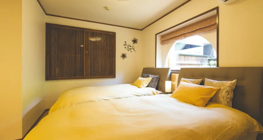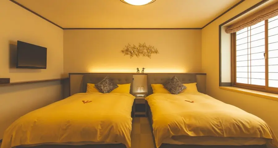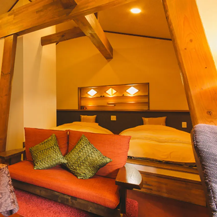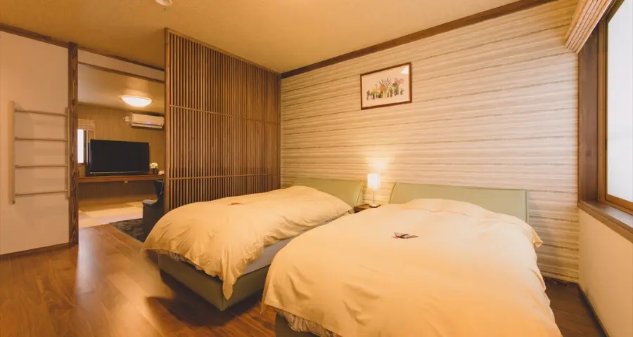 和洋室スイート/定員2〜4名様(2名様はベッド、3~4名は布団での用意)/20畳/陶器洗面台付き・トイレあり/アメニティセット/チェックイン15:00/チェックアウト11:00