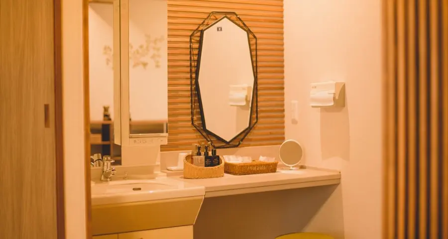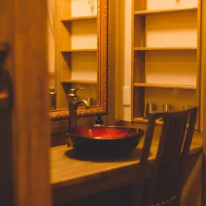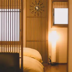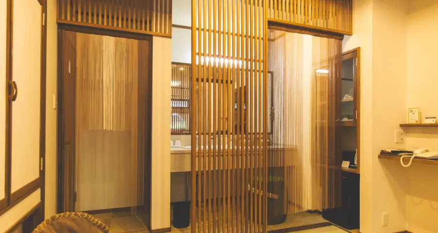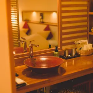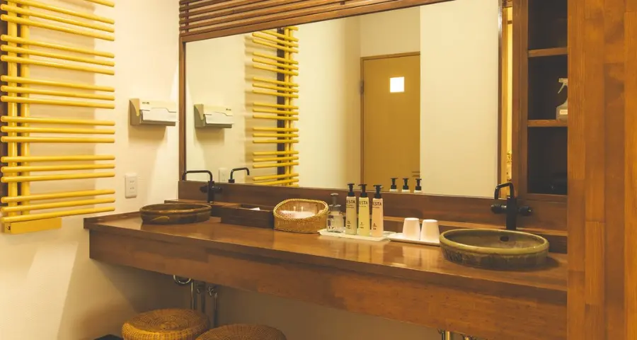 全室に信楽焼洗面台とセパレートトイレを備え、快適で落ち着いた滞在空間を提供します。