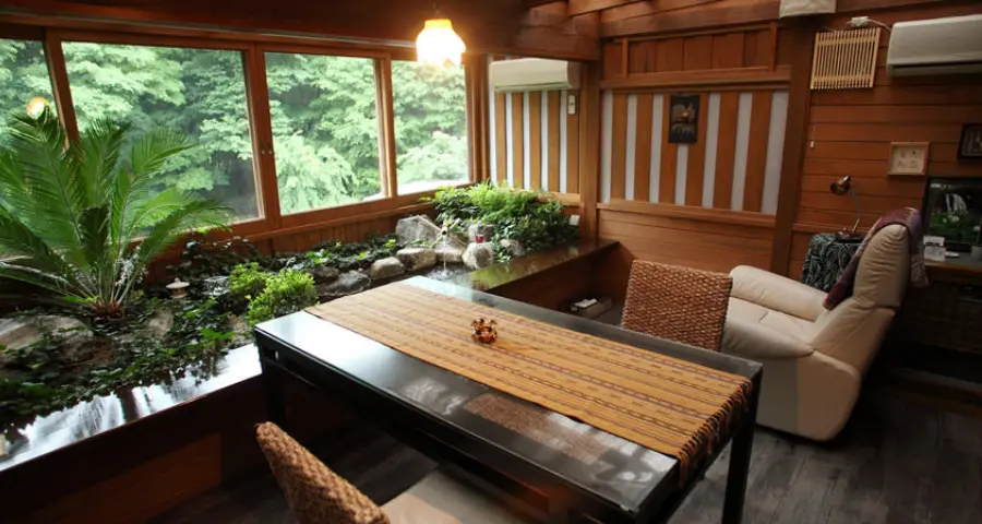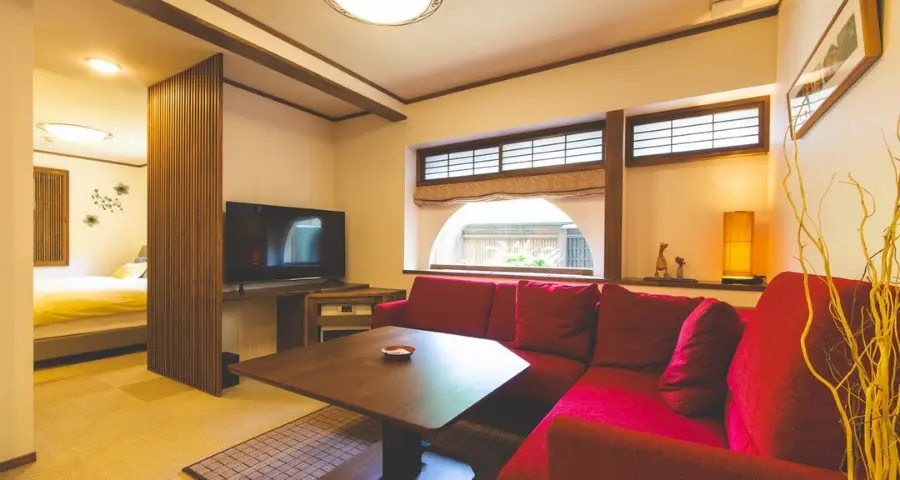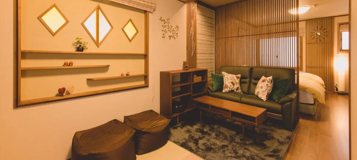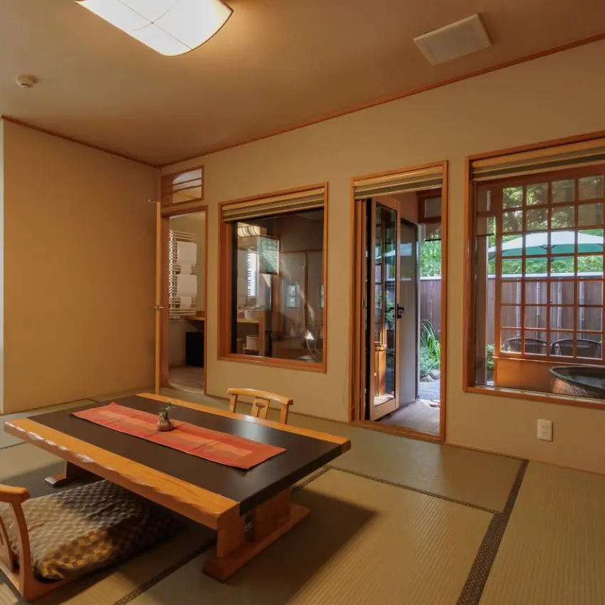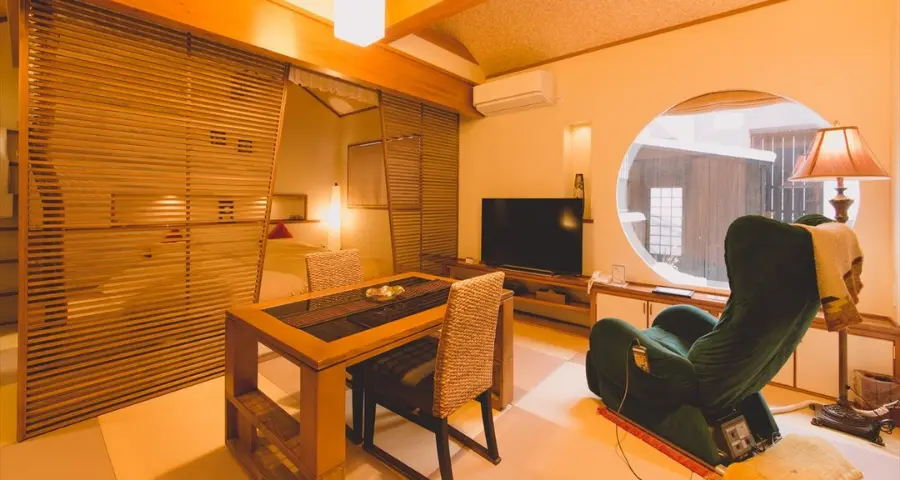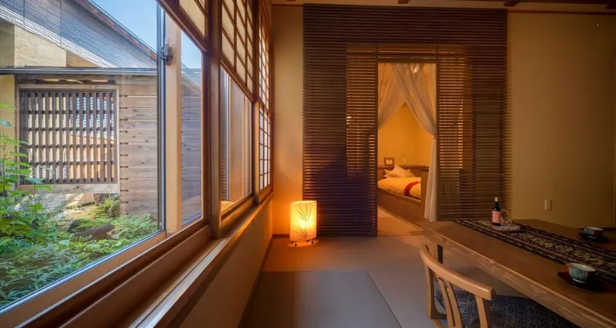 和モダン/専用窓庭付き/陶器洗面あり/トイレあり/おすすめカフェのドリップ珈琲/マッサージチェア/定員2名様/14畳(小上がり3畳)/チェックイン15:00/チェックアウト11:00