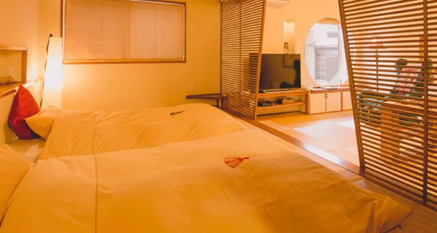 和洋室スイート/定員2〜4名様(ベッドルームは2名様利用)/15畳(和室10畳+ベッドルーム5畳)/陶器洗面台付き・トイレあり/ドリップコーヒー/チェックイン15:00/チェックアウト11:00