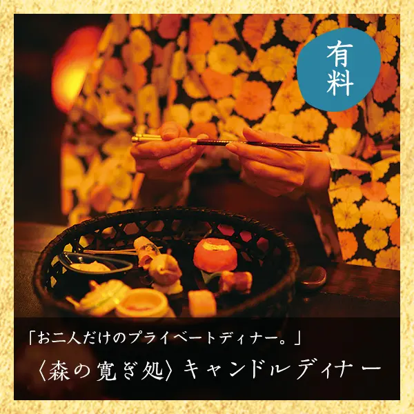 1日1組限定、貸し切りキャンドルディナーです。 寛ぎの空間をお二人だけでお楽しみください。(¥3,200/2名1組)