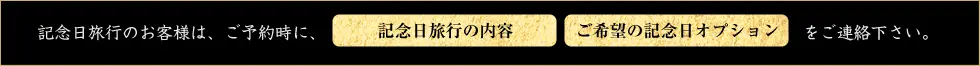 お誕生日、結婚記念日、交際記念、還暦祝い、合格祝い… 人生で大切にしたい様々な記念日を彩冬で過ごしてみませんか。 彩冬では様々な記念日オプションをご用意し、 かけがえのない大切な記念日を演出させていただきます。