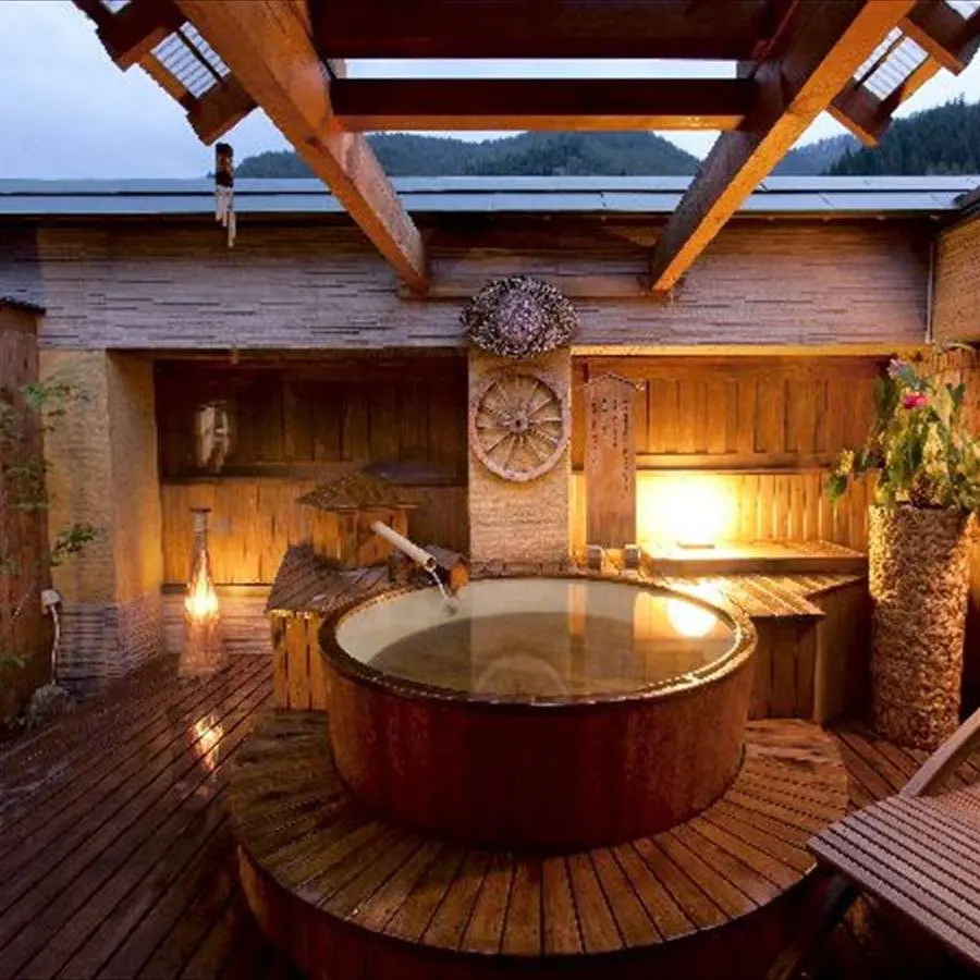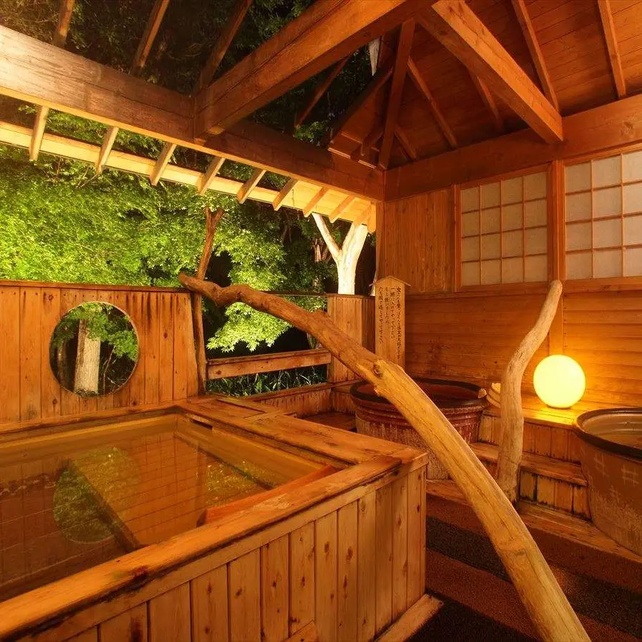 星空の下でくつろげる露天風呂や信楽焼の陶器風呂、